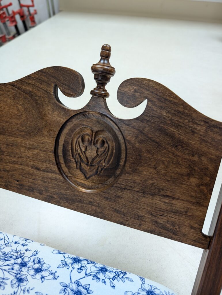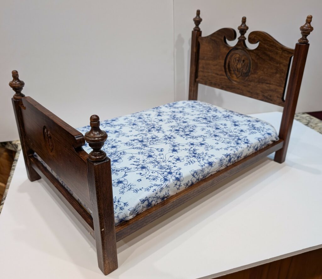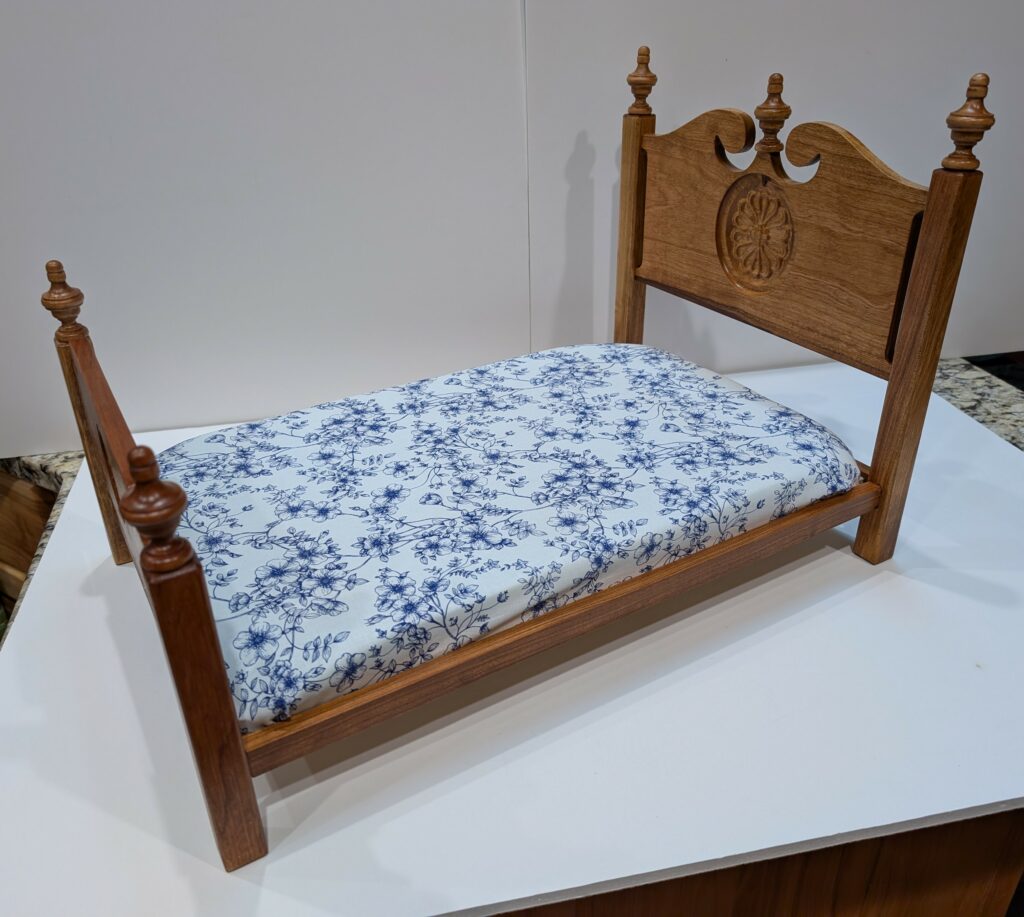 DOLL FURNITURE BEDS – 11/25 – These two Doll Beds were made as Christmas gifts for each of my two granddaughters. The cut-outs and the carvings were made easier and more precise using my new CNC Router. The beds are designed to accommodate a full size American Girl Doll. They are made from cherry wood and finished with two different stains and polyurethane varnish.