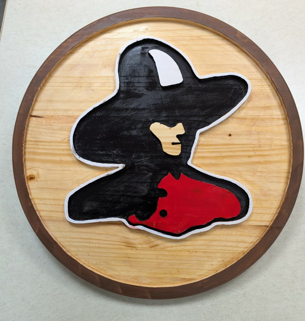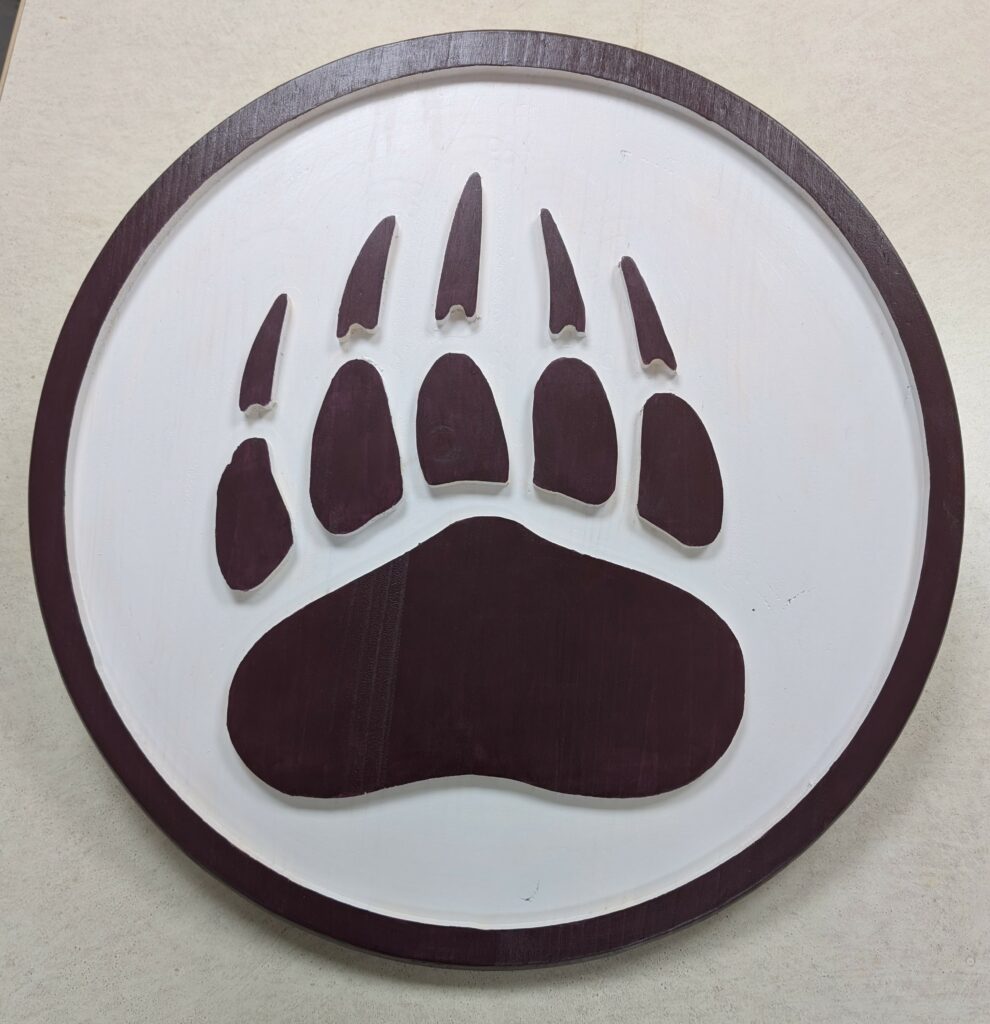 RANCH CLUB LOGO PLAQUES 11/25 – I was commissioned by the Ranch Club Golf Club to make these Logo Plaques to be placed above the two golf simulators that are provide to members by the club. The University of Montana “Griz” golf team uses the simulators during the winter months, so the Griz logo was included with the Ranch Club’s Cowboy logo. I was able to produce these using my new CNC Router.