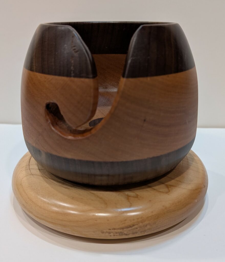 WALNUT/CHERRY/MAPLE YARN BOWL – 06/25 – I turned this Yarn bowl for my Granddaughter Claire. She loves to crochet and this will help her.